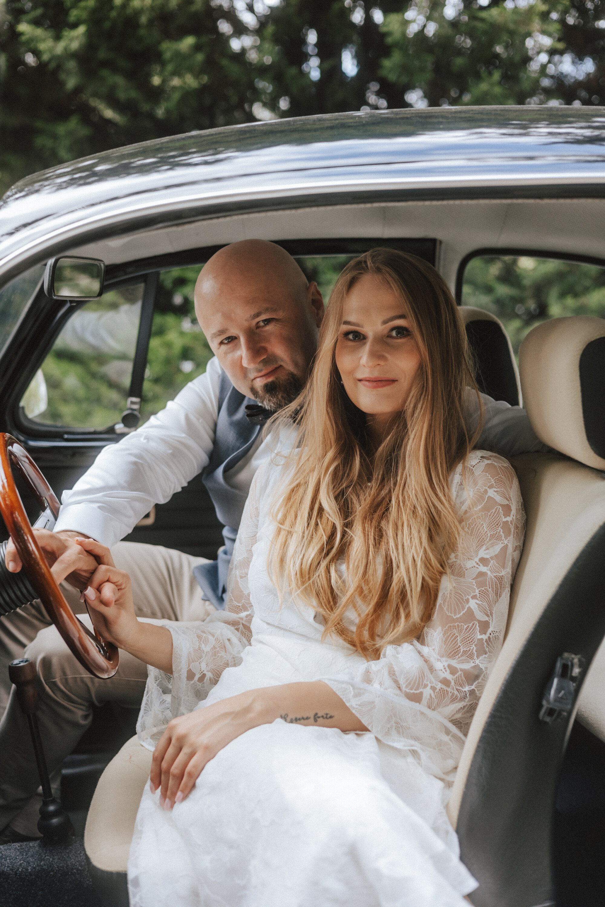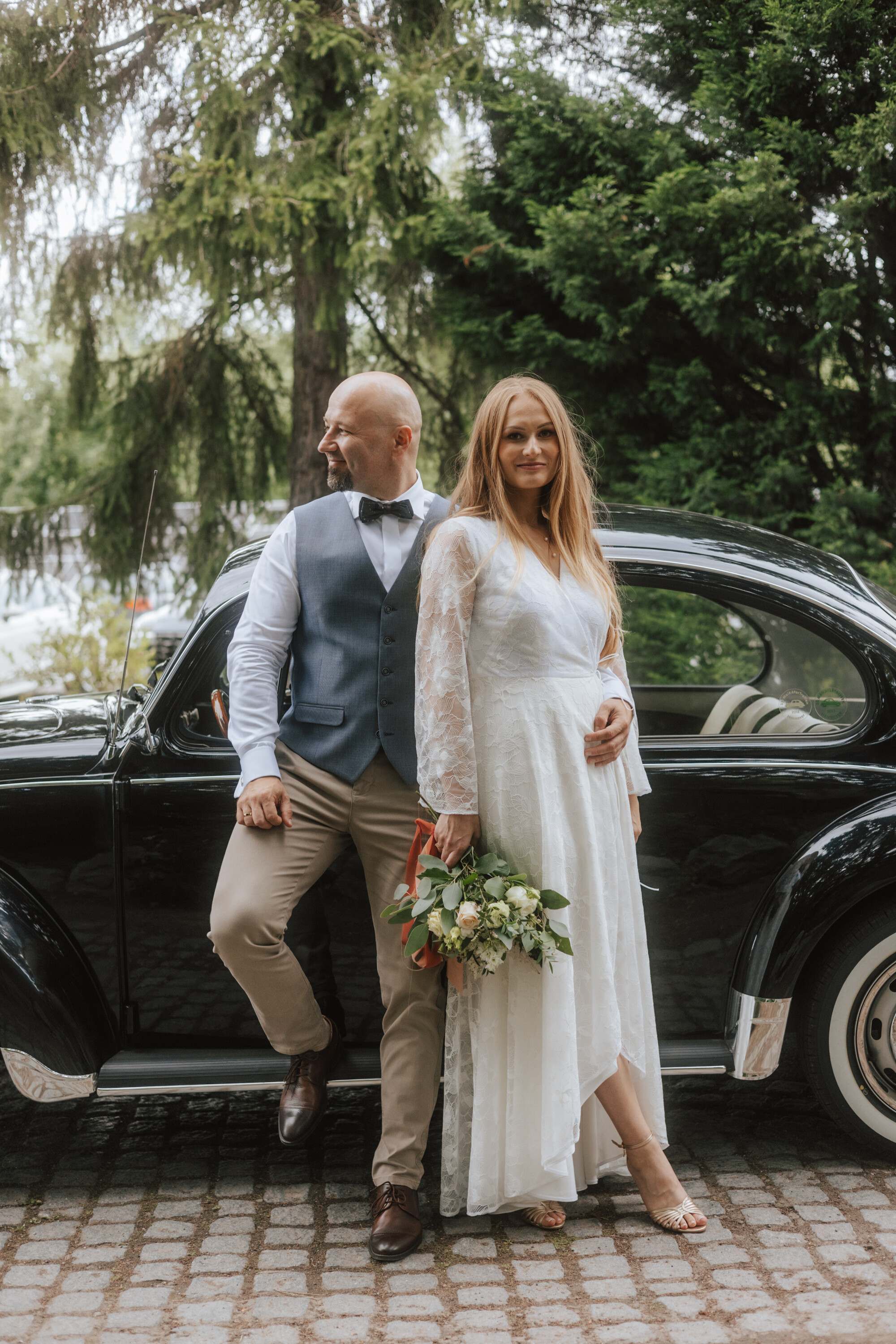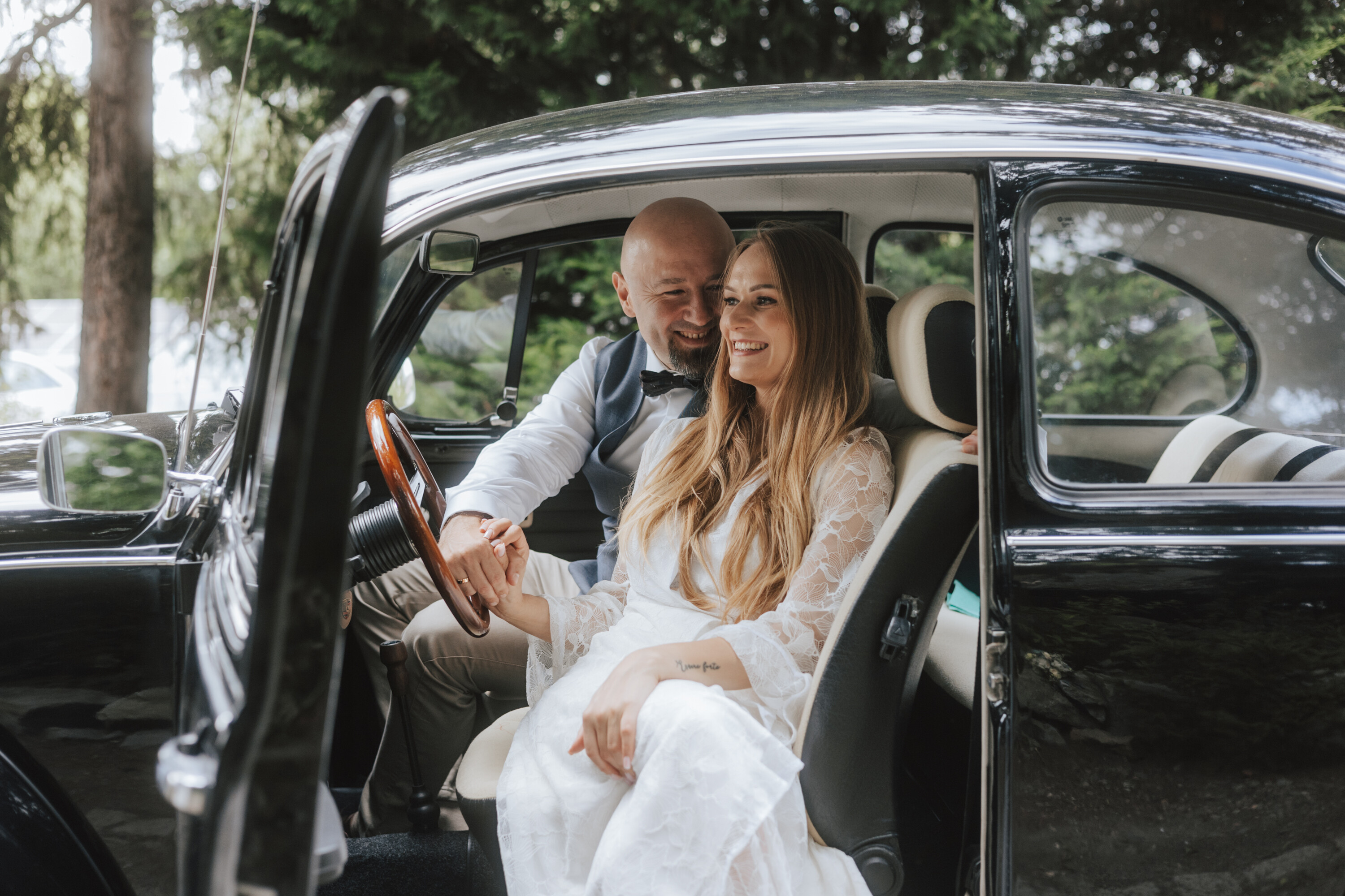 Piękny ogród, klasyczne auto i wyjątkowa Para Młoda - chętnie wracam do tych zdjęć!
