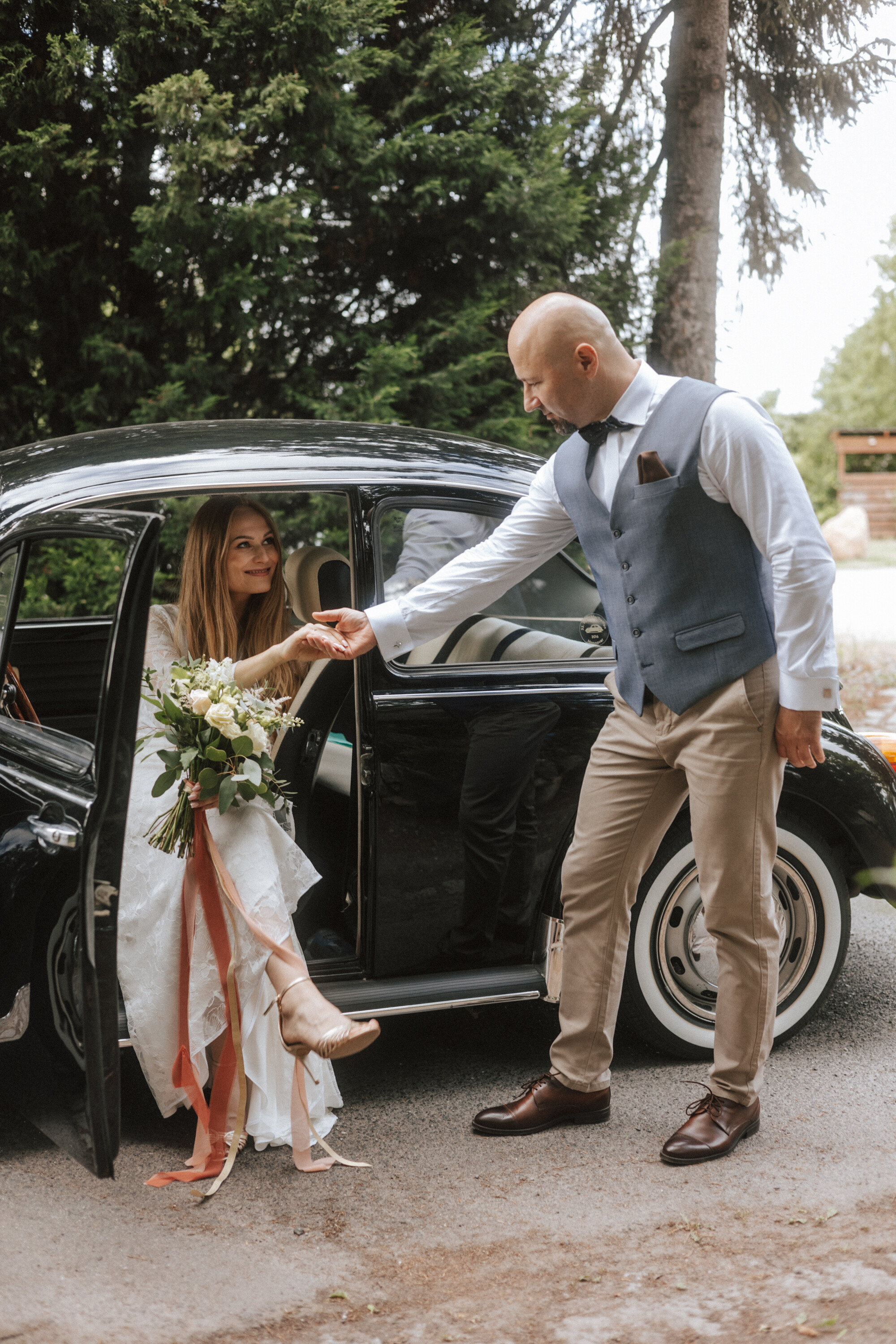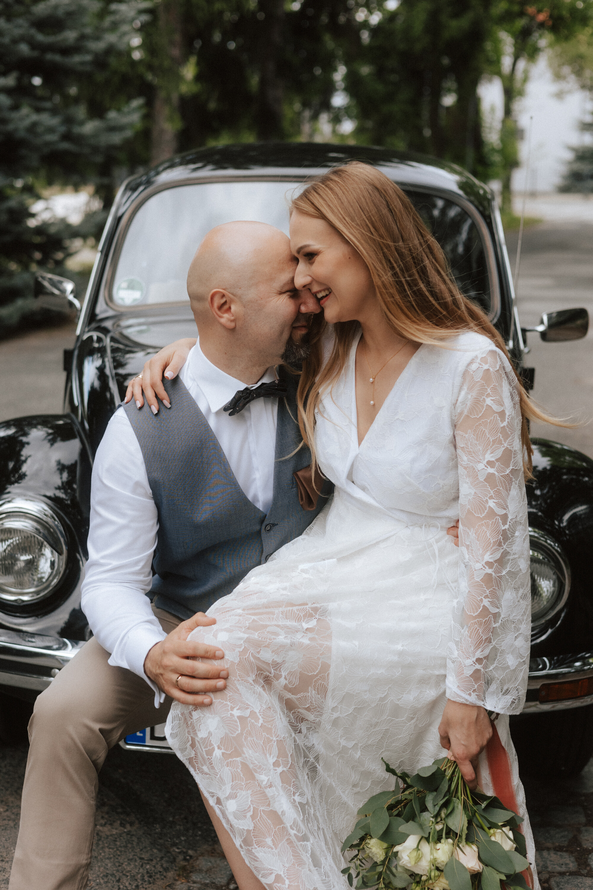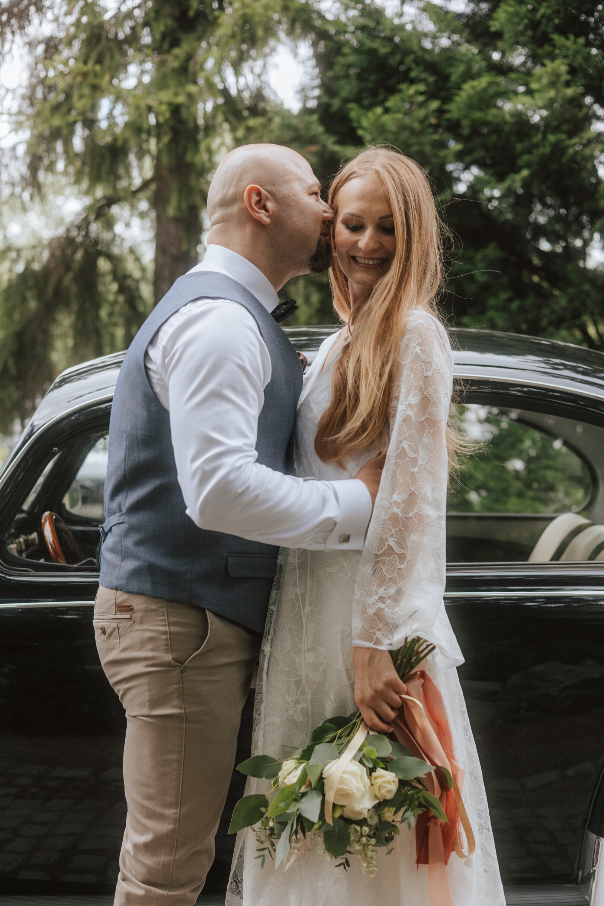Piękny ogród, klasyczne auto i wyjątkowa Para Młoda - chętnie wracam do tych zdjęć!